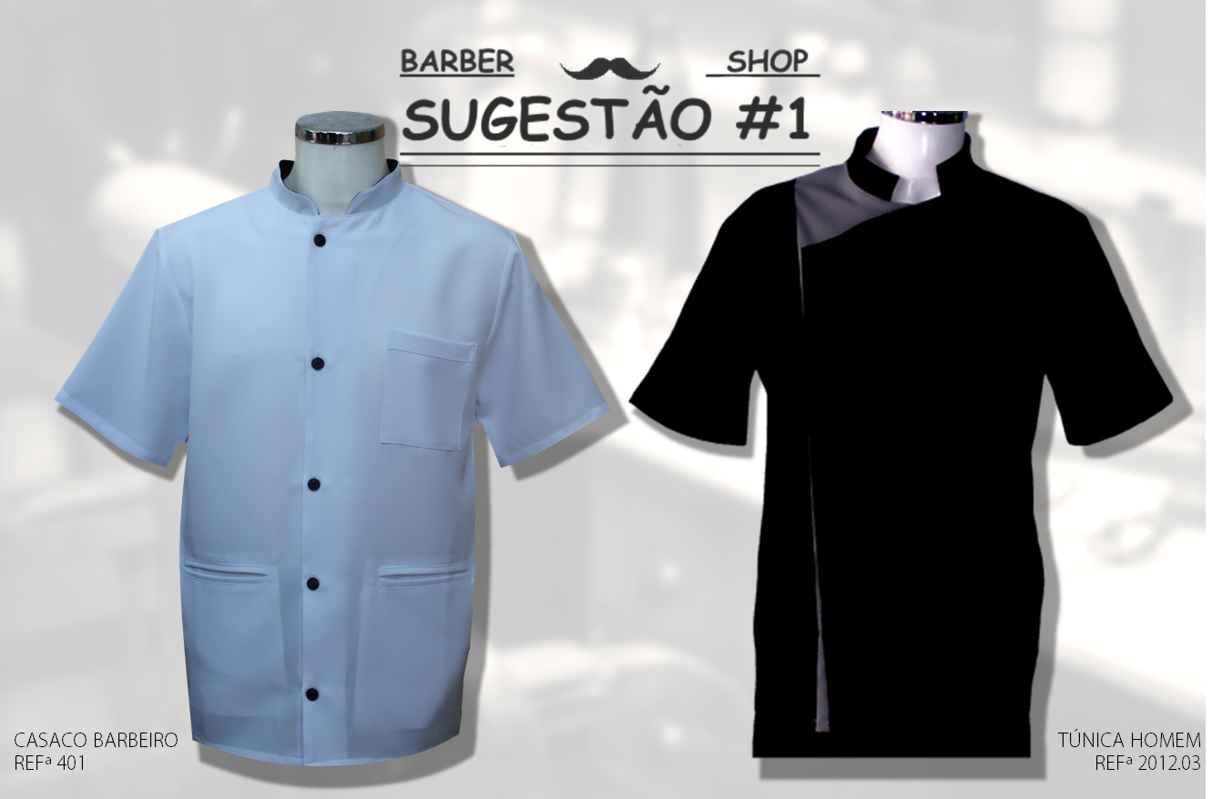 O casaco de barbeiro, em branco. Um modelo largo e simples, desenhado para se enquadrar nos ambientes mais vintage das novas barbearias. Ou a túnica de homem, desenhada para os barbeiros mais atuais - a possibilidade de criar uma segunda cor, é o motivo perfeito para dar largas à sua imaginação.