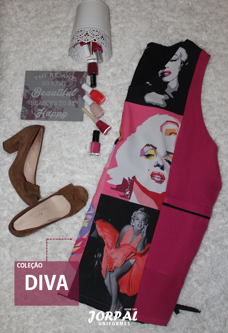 A coleção Diva inspira-nos a criar novos cortes, a reinventar o tom das madeixas, a puxar do batôm mais forte e a carregar no verniz. A coleção Diva não permite que este seja apenas mais um dia nas nossas vidas. A inspiradora Marilyn Monroe leva-nos numa viagem pelo glamour e a fantasia, enquanto oferece à sua cliente um renovado estilo.