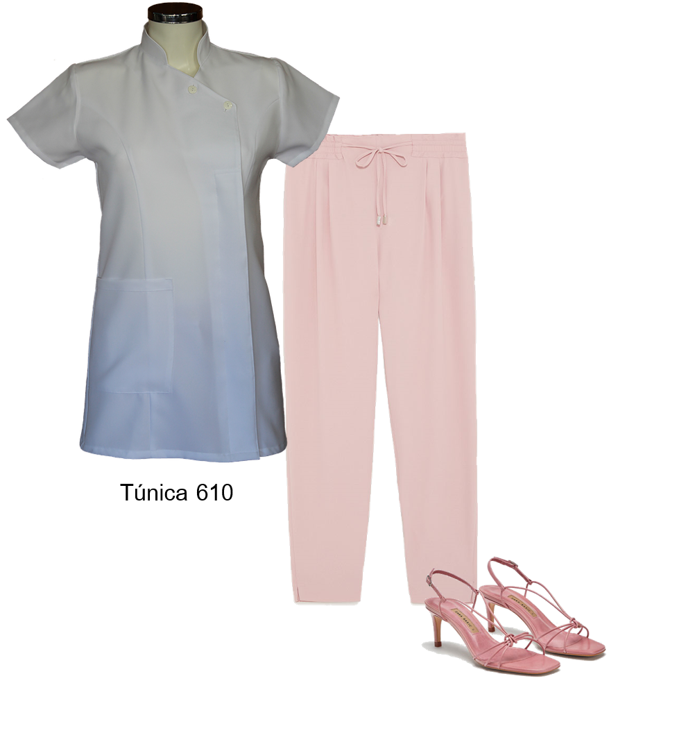 Rosa pálido:O branco da sua túnica vai realçar com este tom. Conjugue com umas sandálias confortáveis, no mesmo tom.